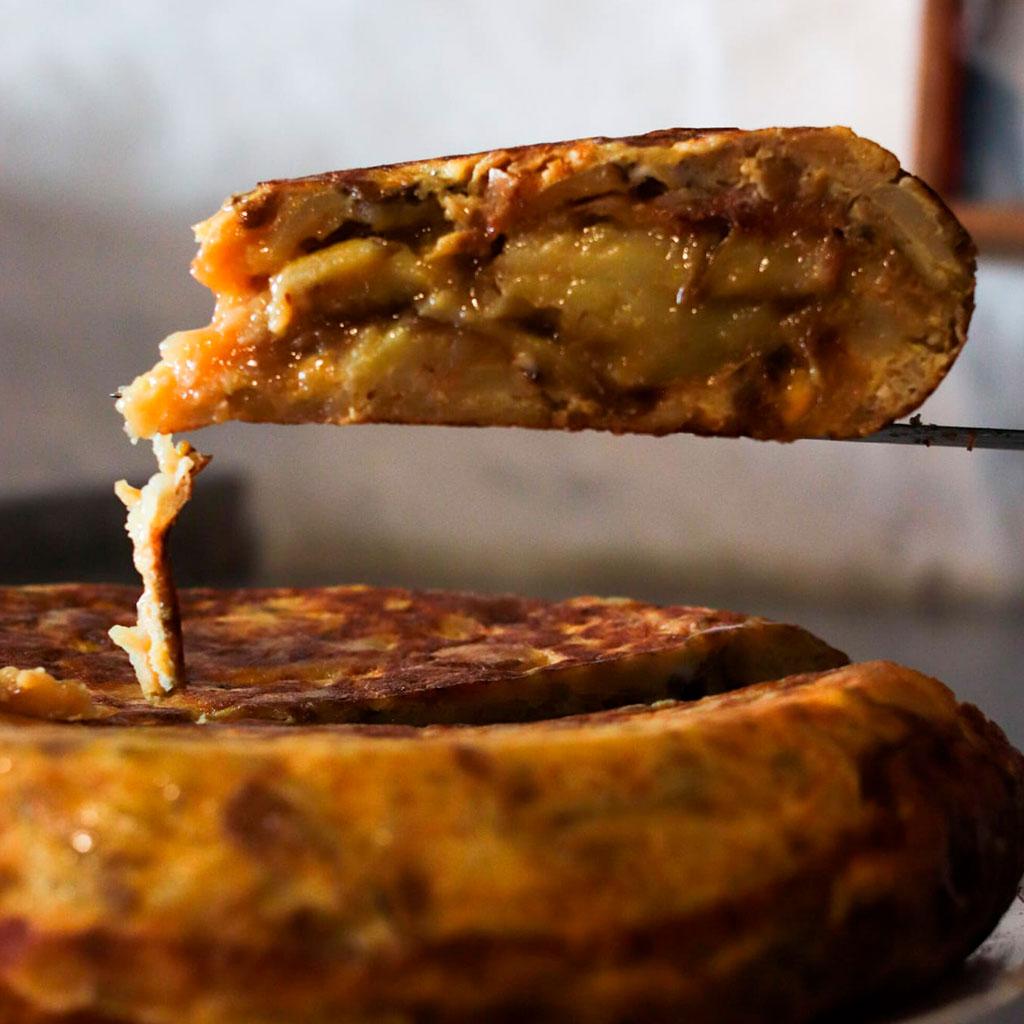 Tortilla de papa con cebolla confitada chica